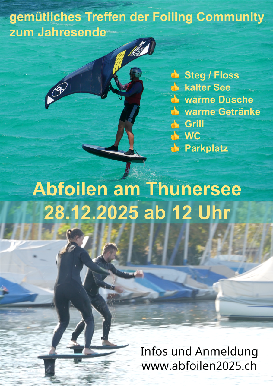 Du fliegst gerne übers Wasser, bist kälteresistent und hast am 28.12.2025 noch nichts los oder suchst einfach einen Grund um deinem Hobby zu frönen und Dich mit Gleichgesinnten auszutauschen? Dann wollen wir die Feiertags-Kalorien gemeinsam im Thunersee ertränken.